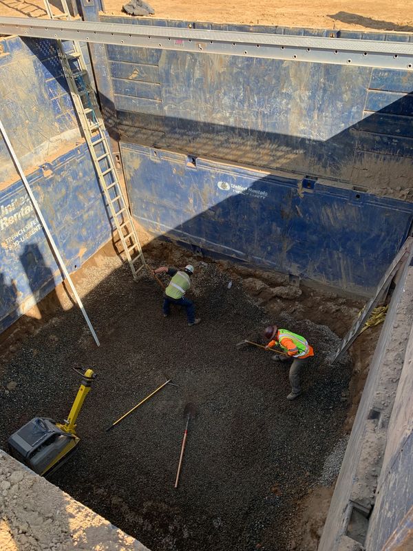 Fabrication and Installation of aluminum tread plate covers on the chlorine contact basin and sand filter influent troughs. The covers consisting of a 3/16" 6061 aluminum tread plate surface and the bottom side having a 2x2x1/4" aluminum angle welded transversely at 24" spacing. The 2x2 angle sitting on a 2x2 angle that is drilled and epoxied into the existing concrete trough. The tread plate to be flush with the top angle that is drilled and epoxied into the existing concrete. Each fabricated section 42" wide by 48" long. Each panel weighing about 50 lbs.